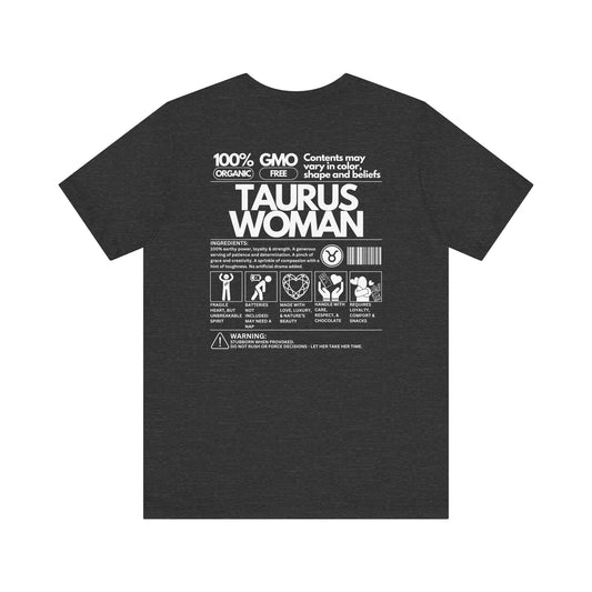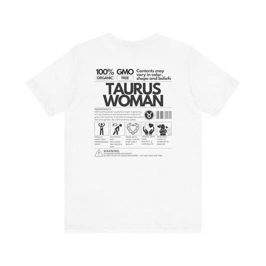 Taurus Woman Shirt – Zodiac Traits Design | Unique Astrology Tee (Back Design Only - Black Text)