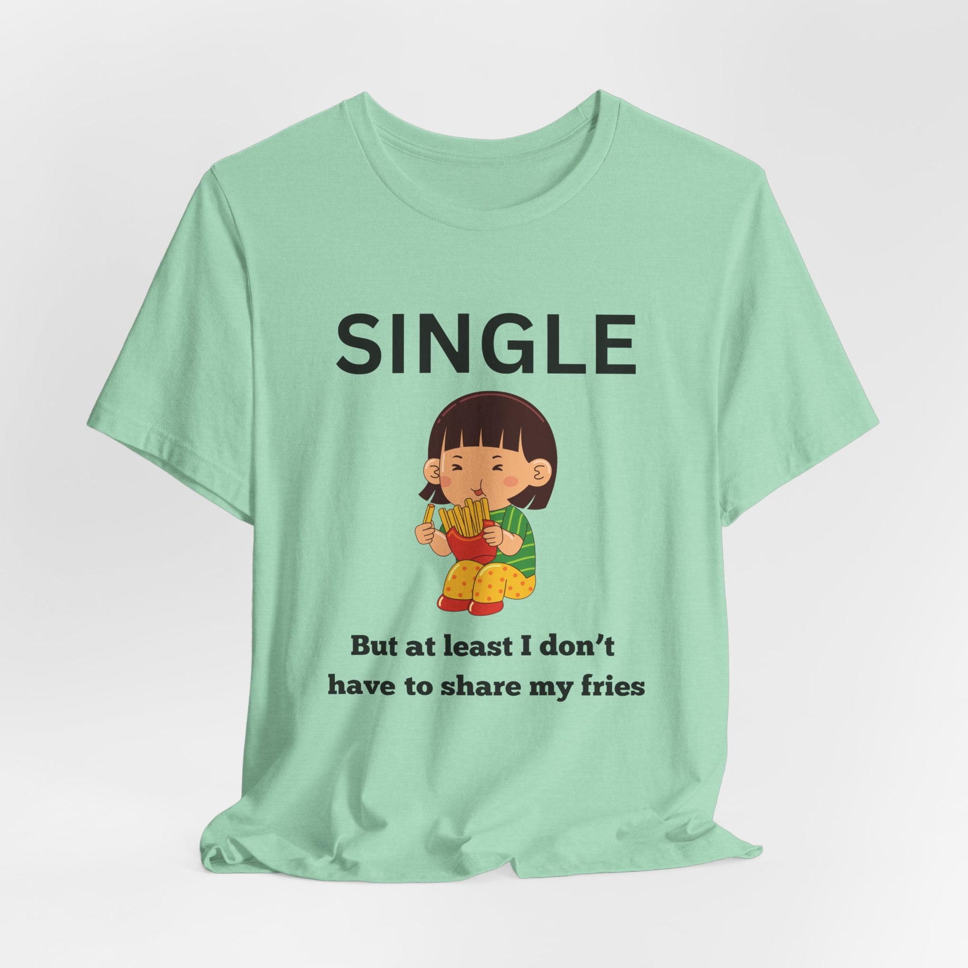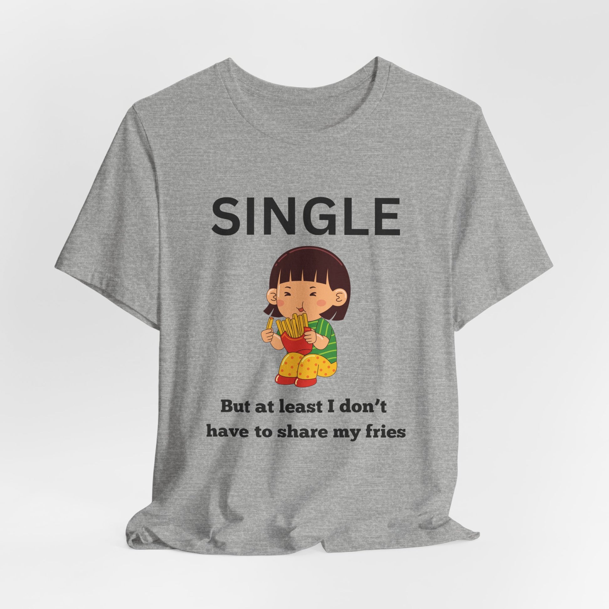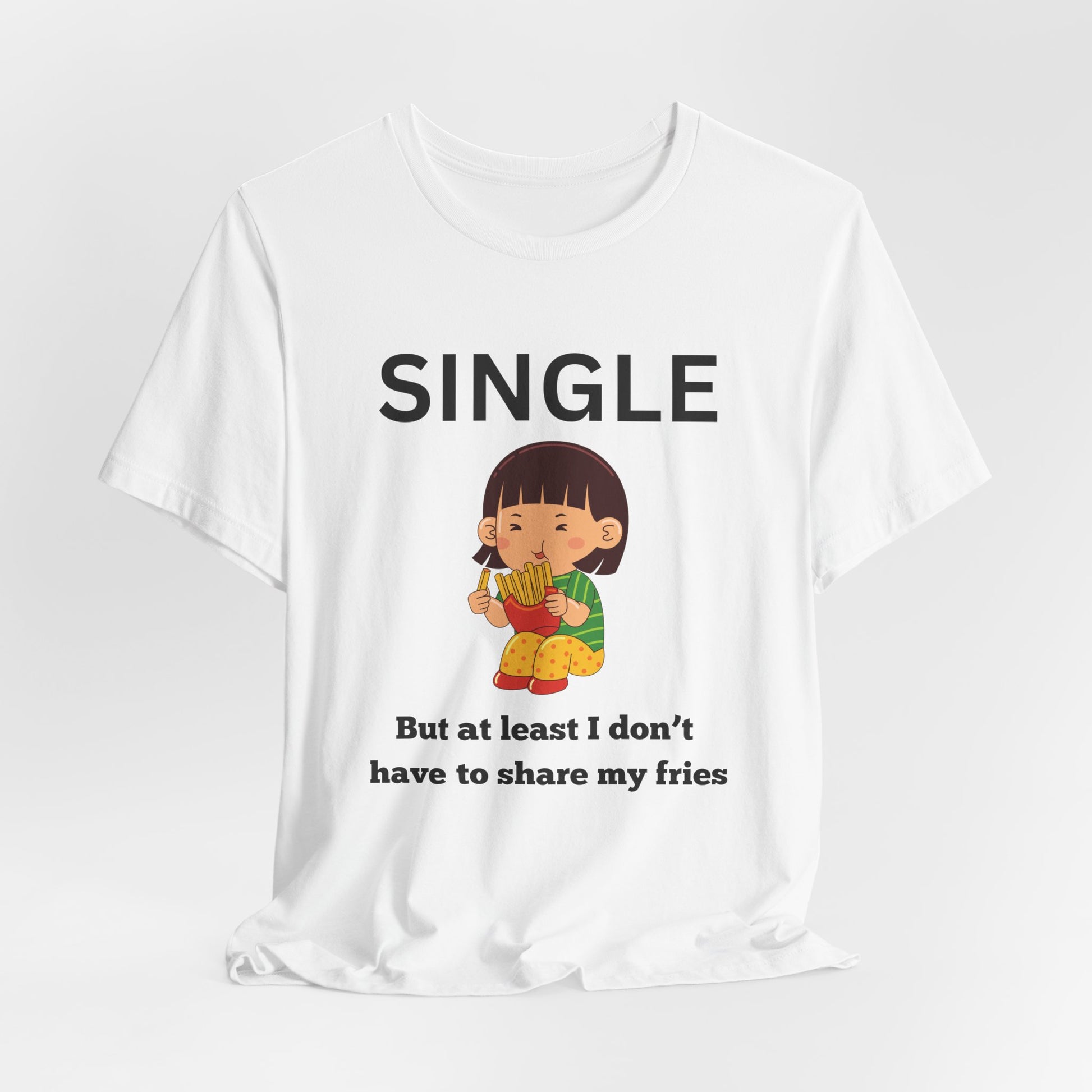 Single, But I Don’t Have to Share My Fries Shirt (Black Text)
