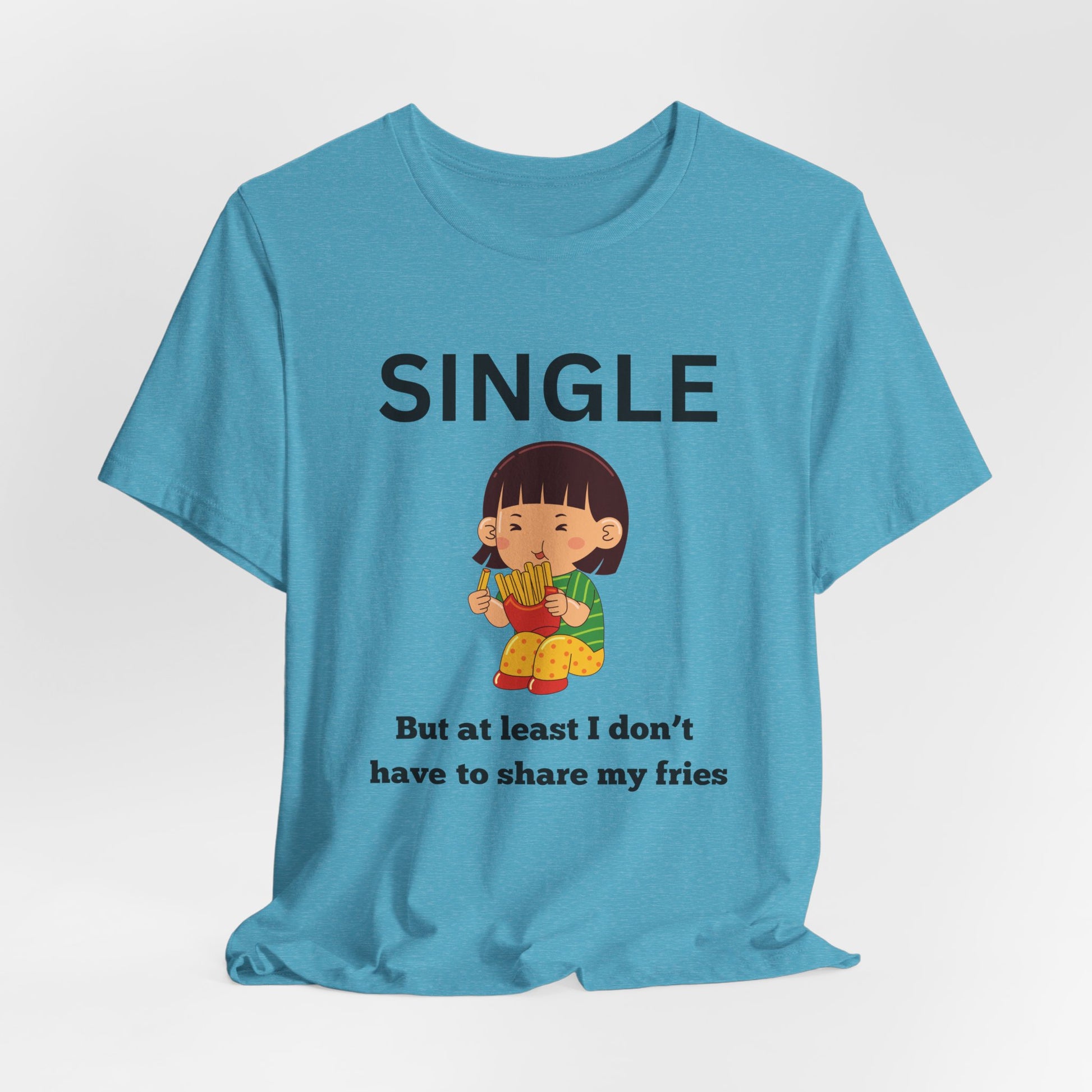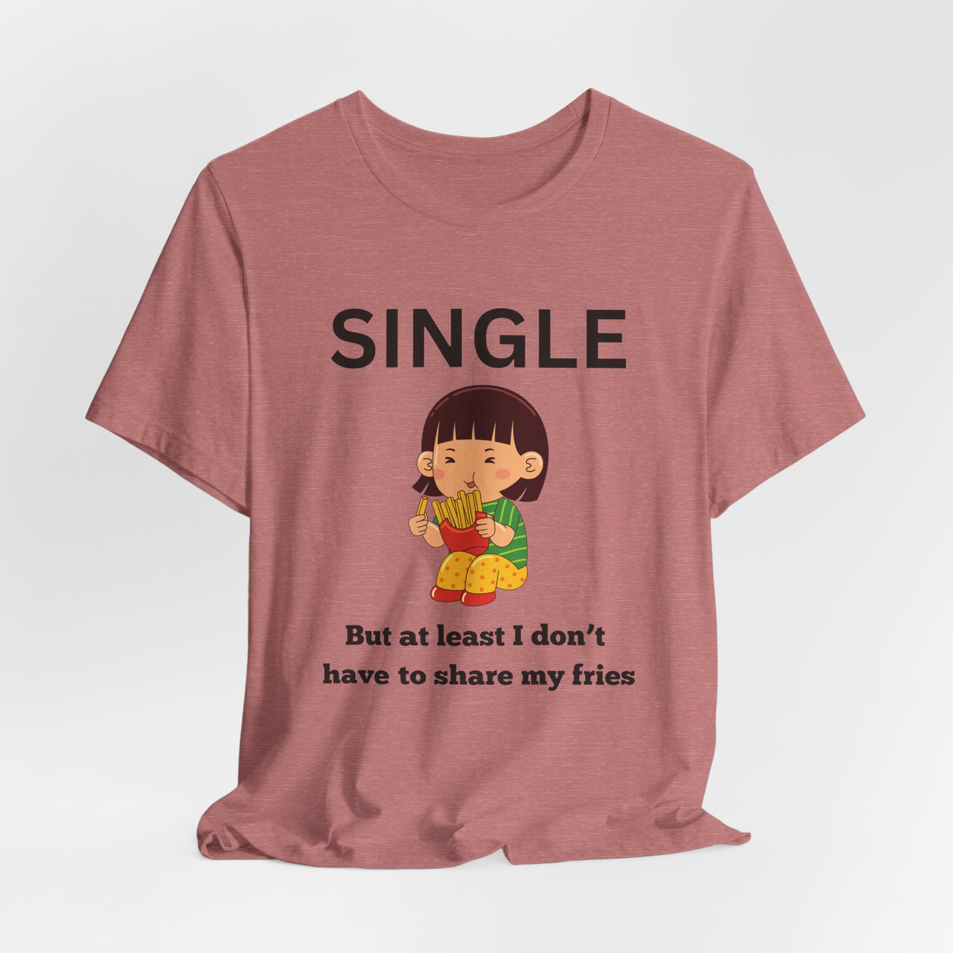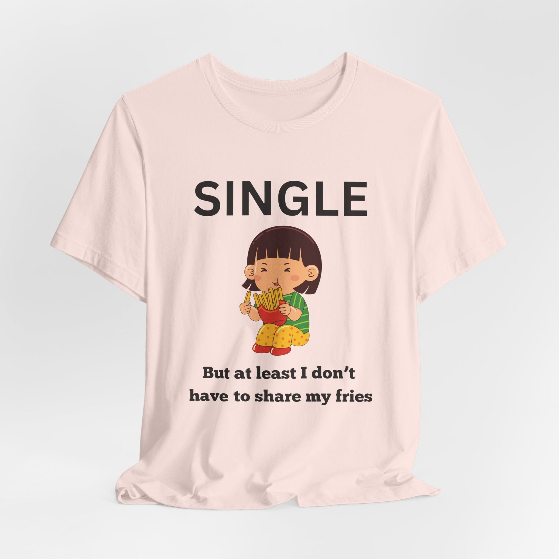 Single, But I Don’t Have to Share My Fries Shirt (Black Text)