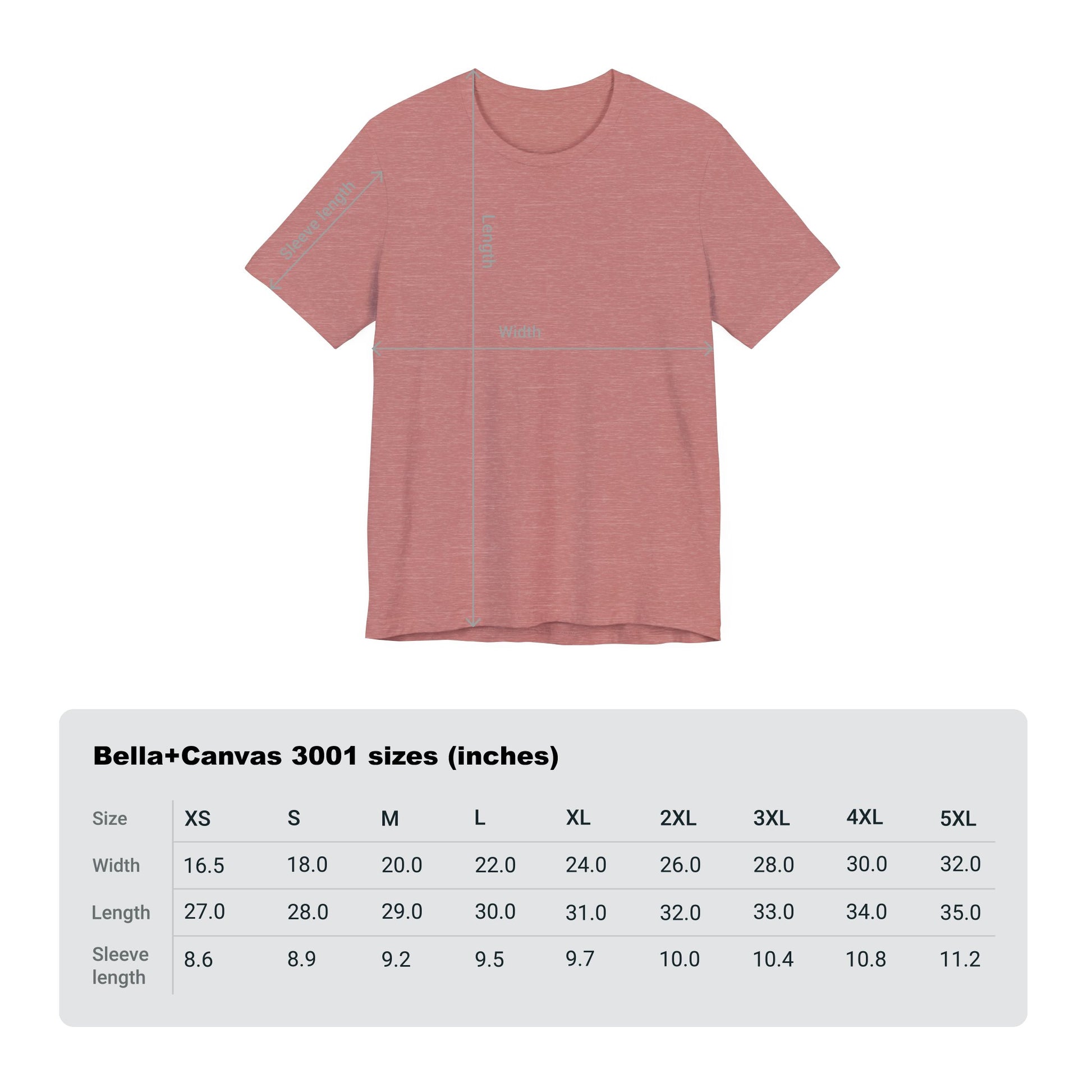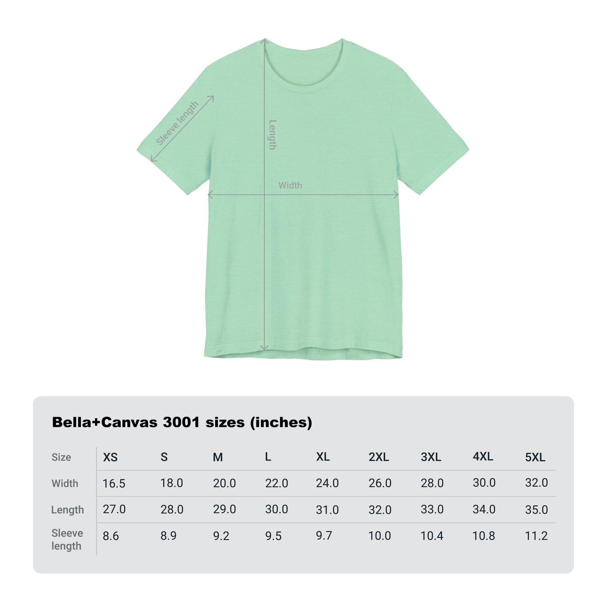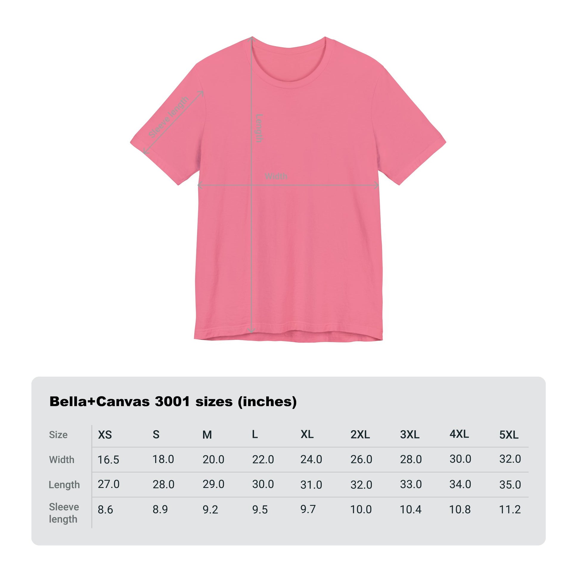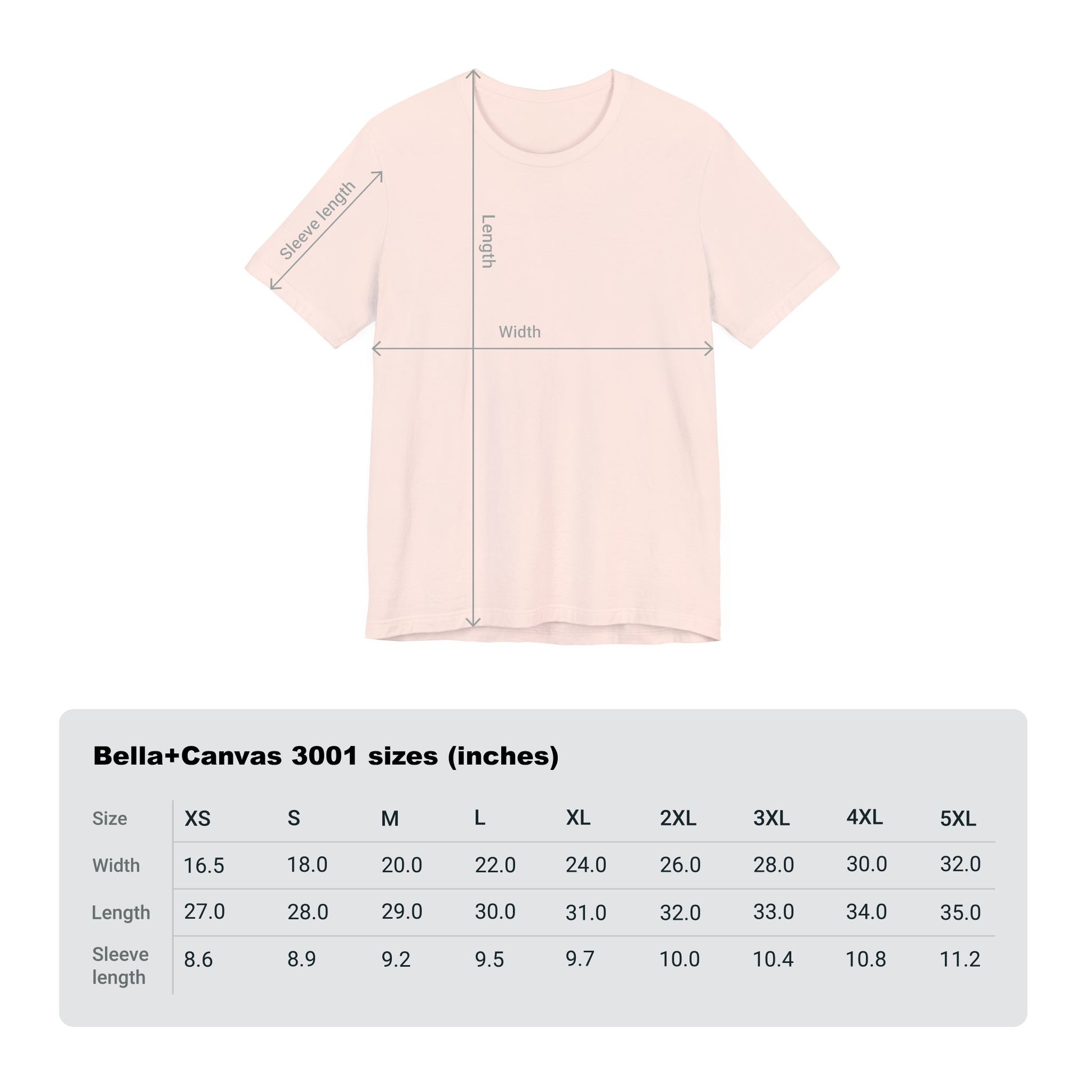 This classic unisex jersey short sleeve tee fits like a well-loved favorite. Soft cotton and quality print make users fall in love with it over and over again. These t-shirts have-ribbed knit collars to bolster shaping. The shoulders are tapered for a better fit over time. Dual side seams hold the garment's shape for longer.